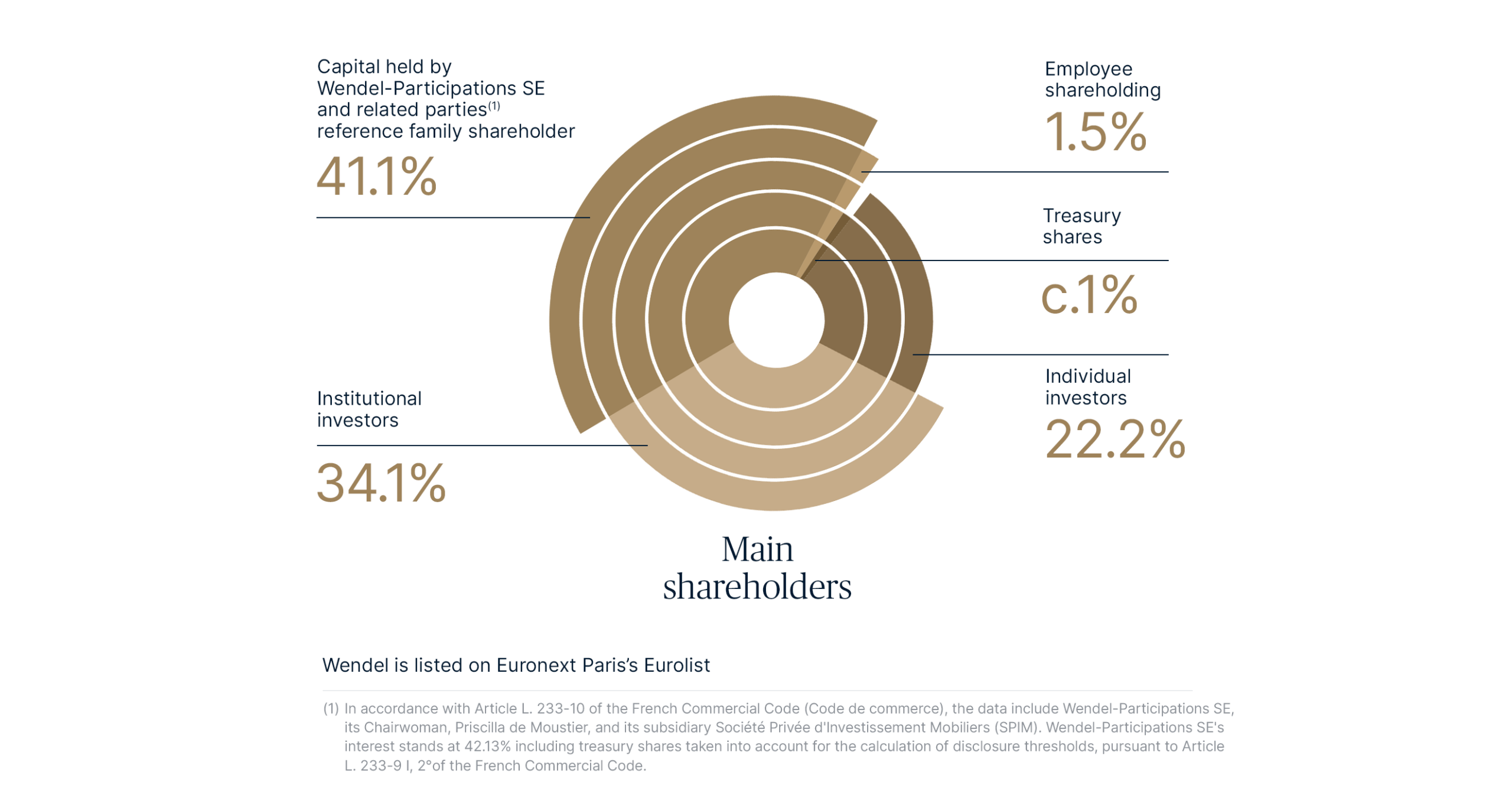 The rest of Wendel’s shares are held principally by institutions (34.1%), 31,049 individuals (22.2%) and Wendel employees (1.5%).